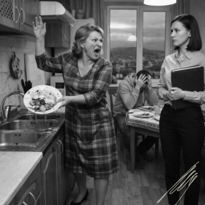 «Подавись!» — свекровь швырнула мою тарелку в раковину при гостях. Через 11 минут она побледнела увидев что я достала из сумки