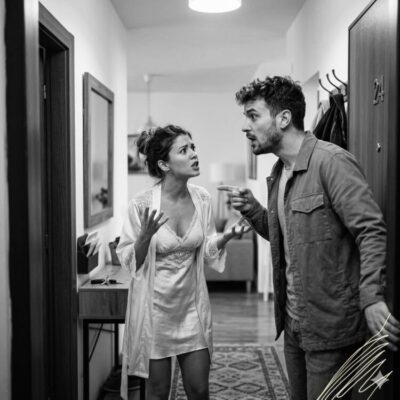Стояла перед ним в новом домашнем костюме — мягком, велюровом, цвета тёмного шоколада. Волосы уложены, лицо спокойное. Выглядела женщиной, у которой всё хорошо.