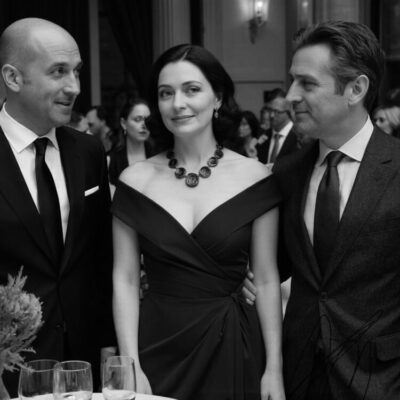 Ресторан на набережной. Зал полон — столы, костюмы, вечерние платья, музыка. Надежда вошла поздно, как и планировала. Разговоры стихли на несколько секунд.