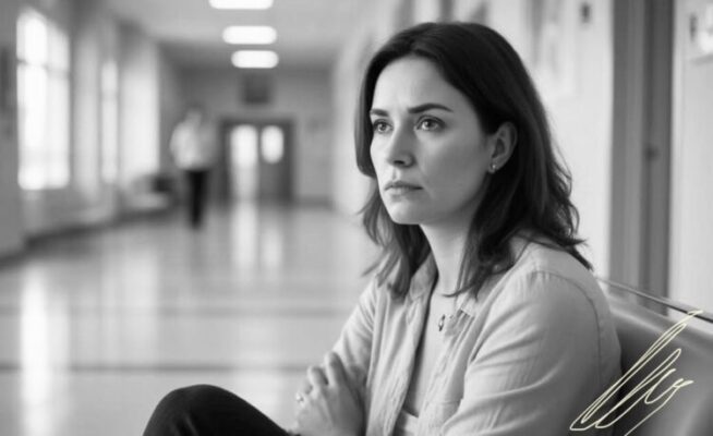 В коридоре было тихо. Где-то далеко, в другом крыле, плакал ребёнок. Санитарка в голубом халате везла каталку. Колёса скрипели.
