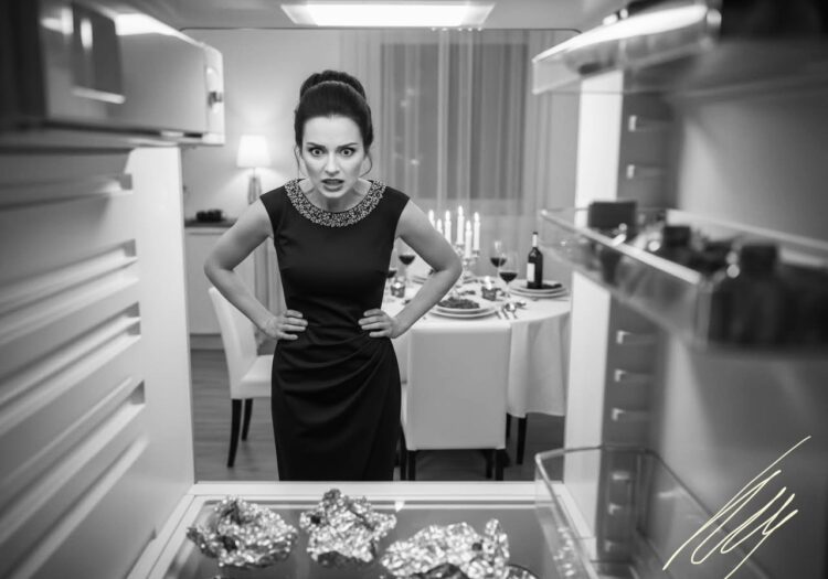 Та была на очередном «свидании всей жизни», на фоне — чужая квартира, на столе — подозрительно знакомый набор закусок.