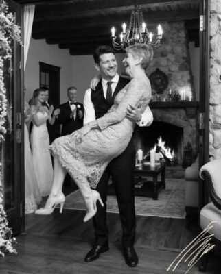 — А теперь по традиции! Жених должен внести невесту на руках! Встречаем хозяина и хозяйку в дом!