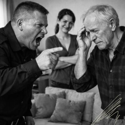 — Заткнись, вонючий старик! Ты живёшь здесь только потому, что мы разрешаем! Мы тебя кормим, одеваем, терпим твоё нытьё! А ты что? Лезешь к моей жене, указываешь, что ей делать!