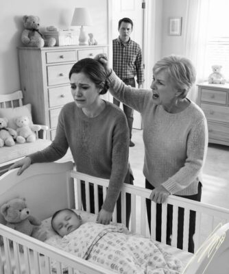 Камера стояла так, что я видел участок у кроватки. Лили была рядом — одной рукой держалась за перила, другой тянулась к подогревателю бутылочки, явно стараясь не потревожить Ноя. Мать подошла слишком близко, как она иногда делала, когда хотела подавить разговором и присутствием. Лили ответила что-то тихо — камера не уловила слов. И тогда мать сделала то, от чего у меня буквально похолодело внутри: резким движением она схватила Лили за волосы, прямо возле детской кроватки.
