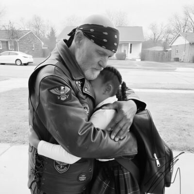 Каждое утро в 7 утра я припарковываю свой Харлей в двух домах от того места, где она живет со своей бабушкой. Я подхожу к двери в своем кожаном жилете, покрытом патчами, и восьмилетняя Кеиша выбегает и запрыгивает мне на руки, будто я самый важный человек в мире.