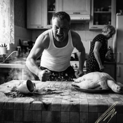 Крик Виктора разрезал утреннюю тишину, 31 декабря 7:00 утра. Лариса вздрогнула, это был рефлекс, выработанный за двадцать восемь лет брака, руки сами потянулись к турке, вылила остывший кофе в раковину, насыпала новый. Виктор, немытый, в растянутой майке-алкоголичке, уже жевал бутерброд, крошки от «Дарницкого» летели на пластиковую клеёнчатую скатерть в красную клетку, ел жадно, чавкая, словно боялся, что еду отнимут.