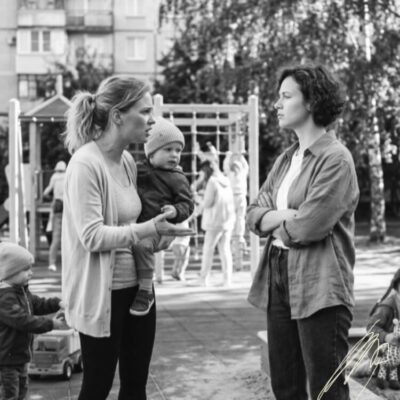 На детской площадке воцарилась странная, почти звенящая тишина, которую нарушал только скрип старых качелей.