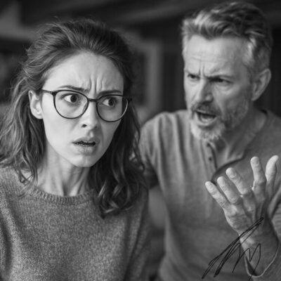 В этот момент в комнату влетел Олег. Его привлёк не шум, а та оглушительная, напряжённая тишина, что повисла в воздухе. В домашней футболке, растрёпанный после дневного сна на диване, он метнул взгляд от изуродованной техники к жене, а затем к дочери. И в ту же секунду сделал свой выбор. Он шагнул вперёд и встал между ними, словно живой щит, загораживая Лизу.