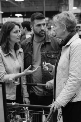 Дарья замерла. Кровь прилила к лицу. Вокруг люди оборачивались, смотрели. Кто-то с сочувствием, кто-то с любопытством. Кассирша замерла с товаром в руках.